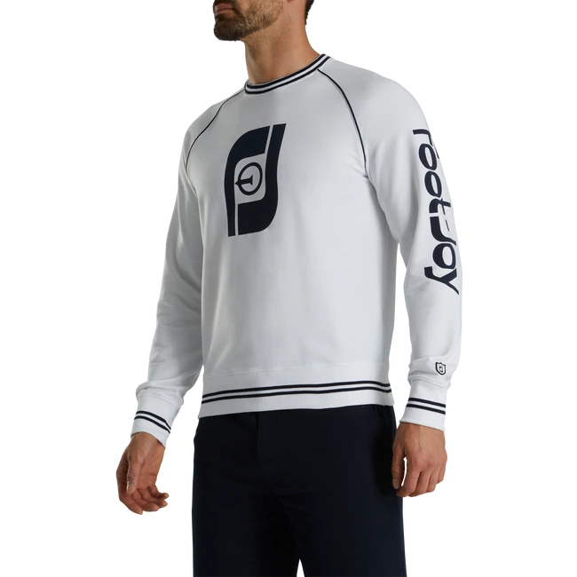 Provides comfort and warmth in a pullover design featuring a vintage golf and tee FJ logo.